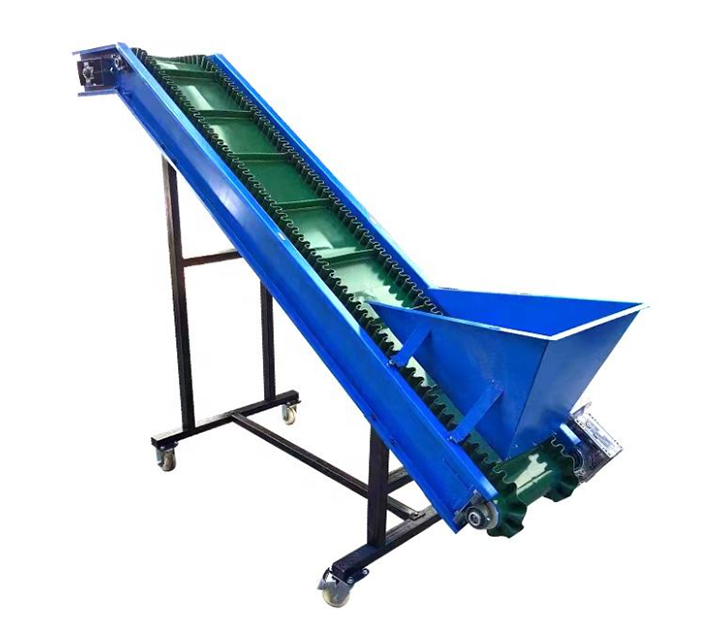 液体填充袋Z型输送机主要有皮带式和链条式两种类型,皮带式倾斜角一般不超过60°,链条式可以进行垂直输送液体填充袋。