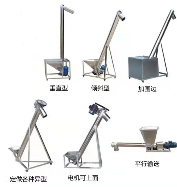 粮食螺旋上料机可以根据空间的大小定制设备的尺寸,也可以定制输送管的长度或者料斗的大小。对于需要频繁移动的场合也可以在机器底部安装万向轮以方面移动。还可以根据粮食的上料速度定制螺旋角度0°-45°,角度越小,输送粮食的效率越快。机器的不锈钢材质耐磨耐腐蚀,并且也清理方便。螺旋管道密闭不会造成物料逸散,减少物料损耗,也使工作环境干净。螺旋上料机可与清理机、破碎机、包装机等配合使用,实现从原粮入厂到成品包装的输送。