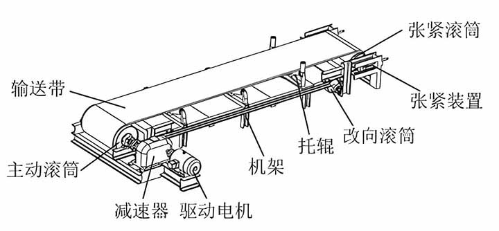 TD 系列带式输送机由驱动、滚动、托辊、清扫、卸料、制动等部分组成,各部件相互配合完成物料的输送过程。