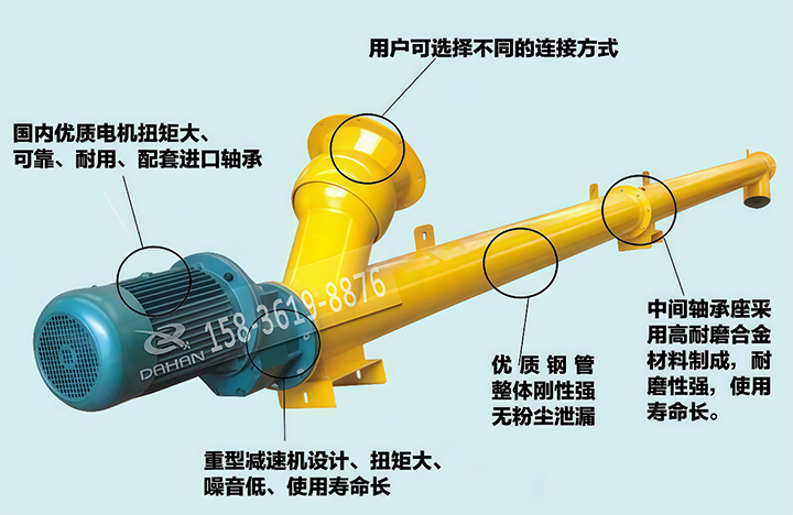 绞龙螺旋输送机是我公司采用优质钢材制造的高品质物料输送设备,先进的双节距叶片设计可减少物料输送过程的压缩程度,优质的重型减速箱设计,具有转矩大、噪音低等优点,是搅拌站的配套设备。