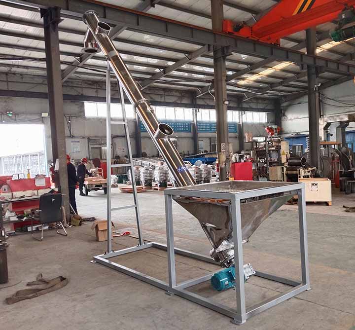 不锈钢螺旋上料机除电机、轴承、机架外其余均为不锈钢制成,是食品、医药等行业常用的一种输送设备,可以分为304、304L、310、316、316L等不同类型的不锈钢材质,可以根据输送物料进行合理选择,高腐蚀型物料选择高标号的不锈钢,如316、316L不锈钢材质,要是简单的湿度比较大,腐蚀较弱就可以选择304不锈钢材质。